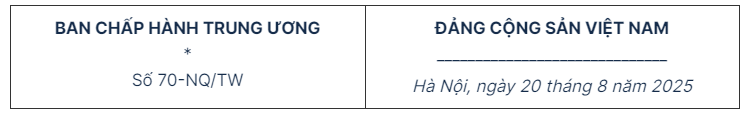 Toàn văn Nghị quyết số 70-NQ/TW ngày 20/8/2025 của Bộ Chính trị về bảo đảm an ninh năng lượng quốc gia đến năm 2030, tầm nhìn đến năm 2045.