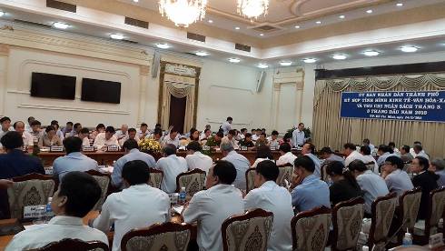 UBND TP.HCM họp nghe báo cáo về tình hình kinh tế, xã hội 3 tháng đầu năm - ảnh: H.T