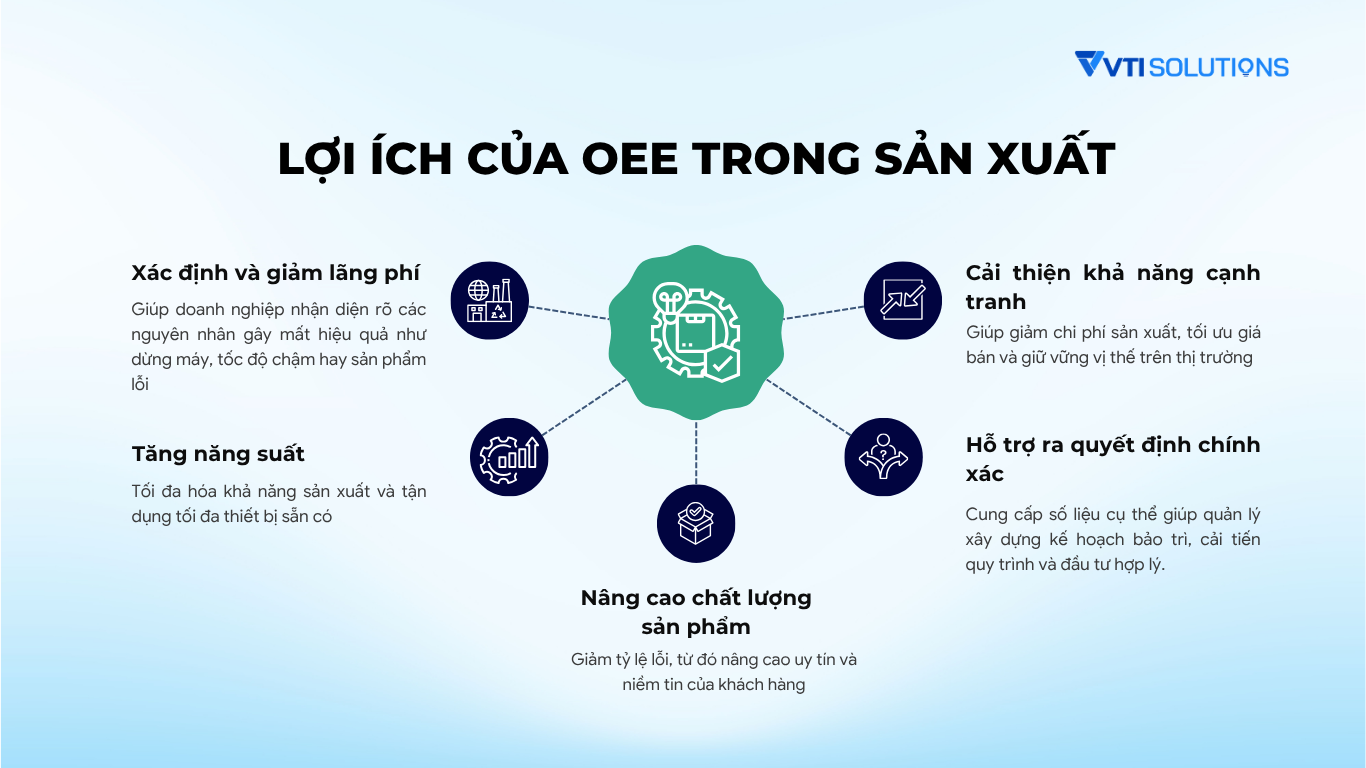 Trong nhà máy hiện đại, OEE không chỉ là chỉ số đo lường mà còn là công cụ quản trị chiến lược. Khi được theo dõi liên tục, chỉ số này giúp doanh nghiệp xác định chính xác các điểm nghẽn trong hệ thống sản xuất và ưu tiên cải tiến đúng khu vực cần thiết.