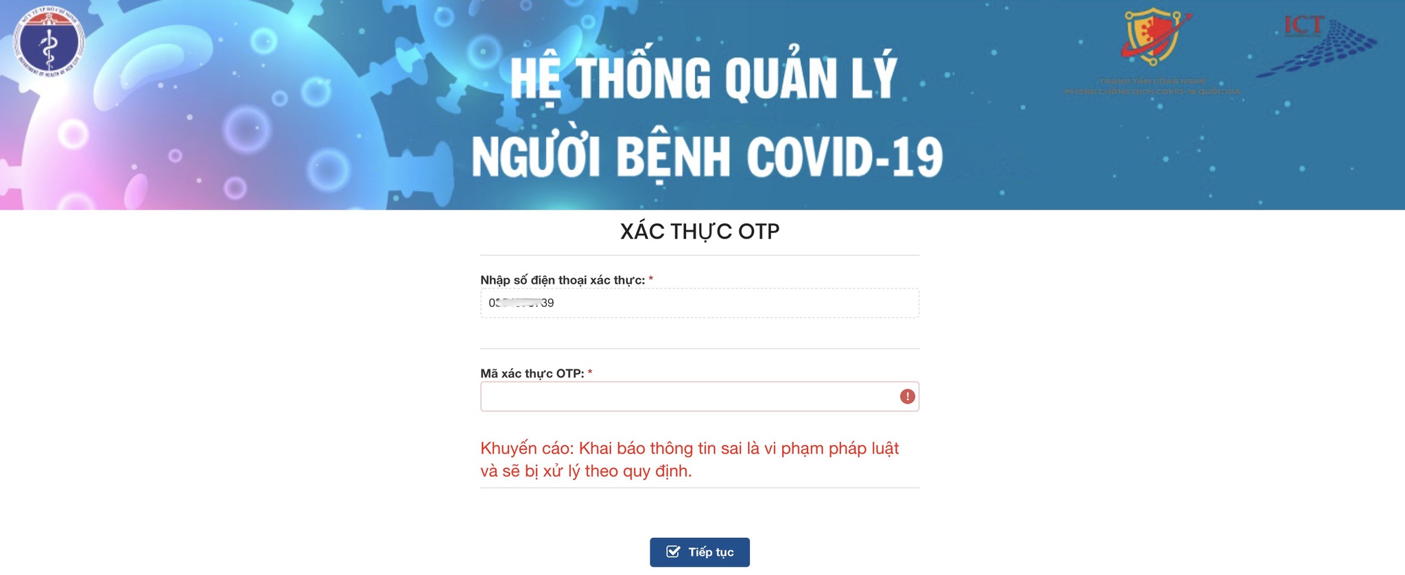 Nhập số điện thoại rồi nhấn vào "Nhận mã OTP". Sau đó, nhập mã OTP được gửi về điện thoại rồi nhấn "Tiếp tục".