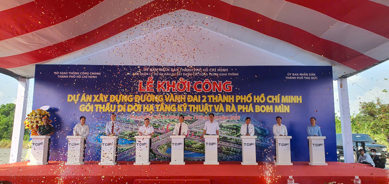 (VietQ.vn) - Sáng 19/4, TP.HCM khởi công gói thầu đầu tiên của dự án Vành đai 2 – đoạn 1 và 2, bao gồm di dời hạ tầng kỹ thuật và rà phá bom mìn, tạo tiền đề thi công chính thức vào tháng 9.
