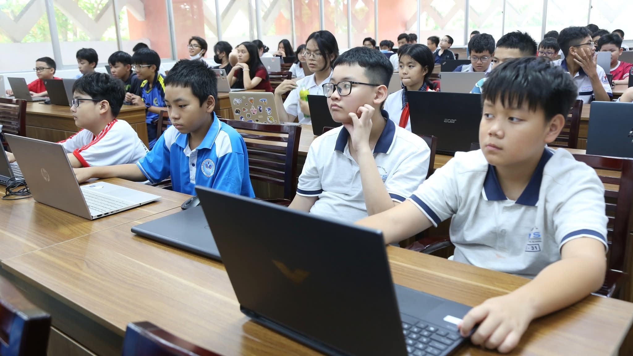 Các em học sinh tham gia lớp bồi dưỡng kiến thức về trí tuệ nhân tạo.
