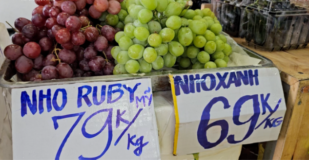 Theo ghi nhận của VTC News tại một cửa hàng trái cây trên đường Lê Trọng Tấn (phường Tây Thạnh, thành phố Hồ Chí Minh), nhiều loại trái cây nhập khẩu được bày bán. Trong đó, nho Ruby được nhân viên giới thiệu là nho Mỹ nhưng có giá khá rẻ, chỉ 79.000 đồng/kg. Để tạo niềm tin cho khách hàng, tấm biển ghi giá còn được bổ sung thêm dòng chữ “Mỹ” nhằm khẳng định nguồn gốc xuất xứ. Khi được hỏi vì sao nho Mỹ lại có giá rẻ như vậy, nhân viên cửa hàng cho biết do đang vào mùa, hàng nhập về nhiều nên giá bán giảm.
