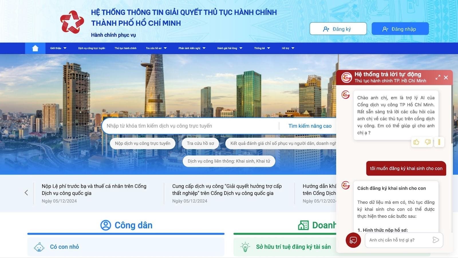 Trợ lý ảo GenAI hỗ trợ người dân, doanh nghiệp trên cổng dịch vụ công TP Hồ Chí Minh.