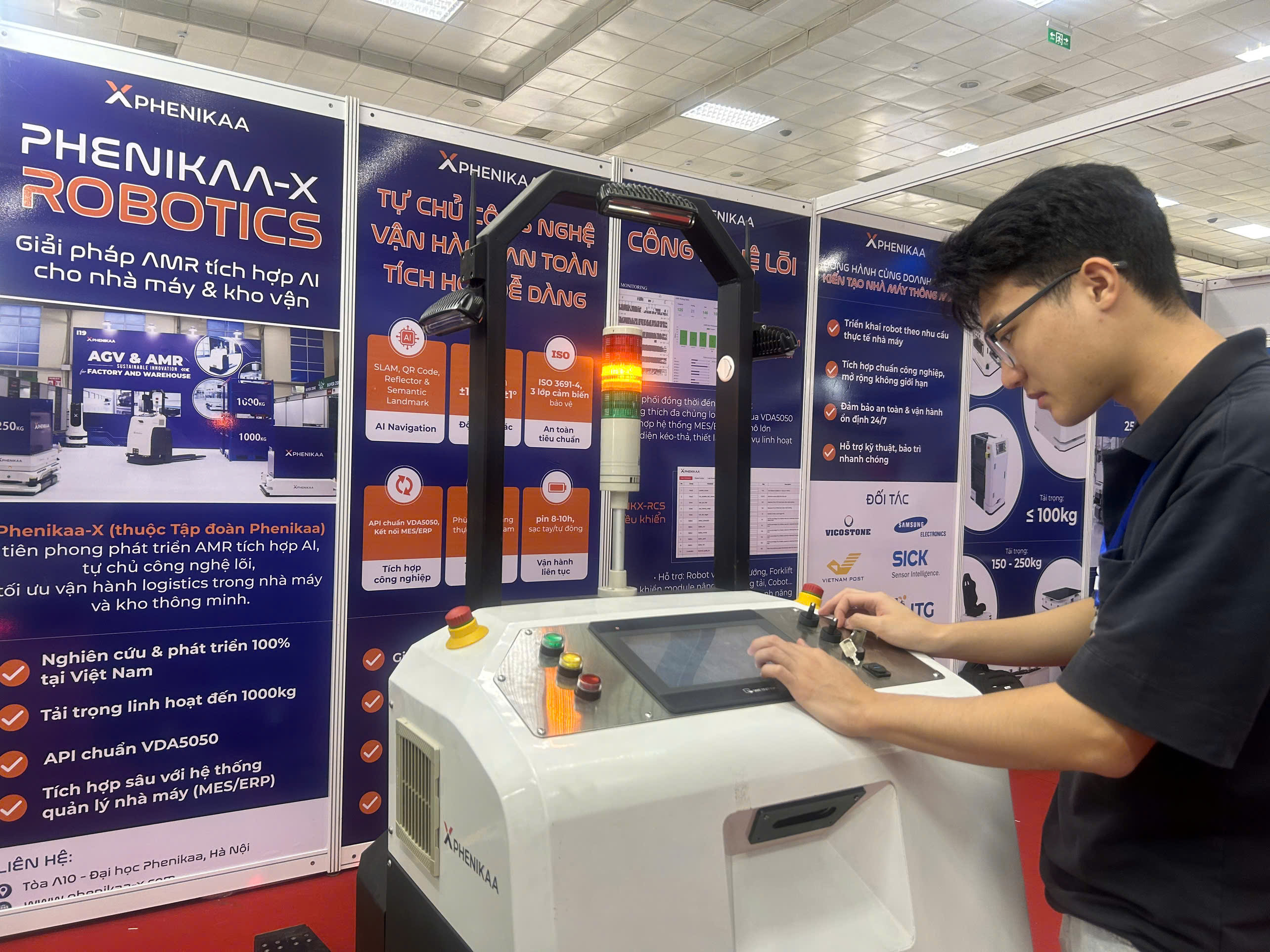 Robot tự hành của Phenikaa trưng bày tại Hội chợ triển lãm thu hút sự quan tâm của khách tham quan