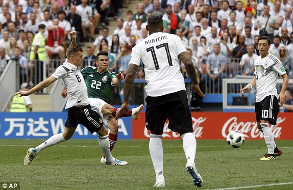 26' Sau tình huống cố định của Đức, Mexico phản công nhưng Lozano xử lý rườm rà.
