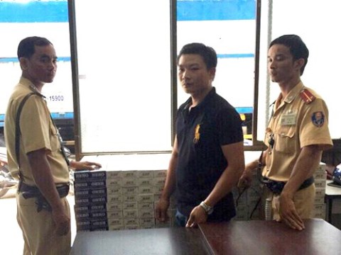 Tài xế Hồ và 13.000 gói thuốc lá lậu bị trạm CSGT Tây Bắc tạm giữ. Ảnh: CA