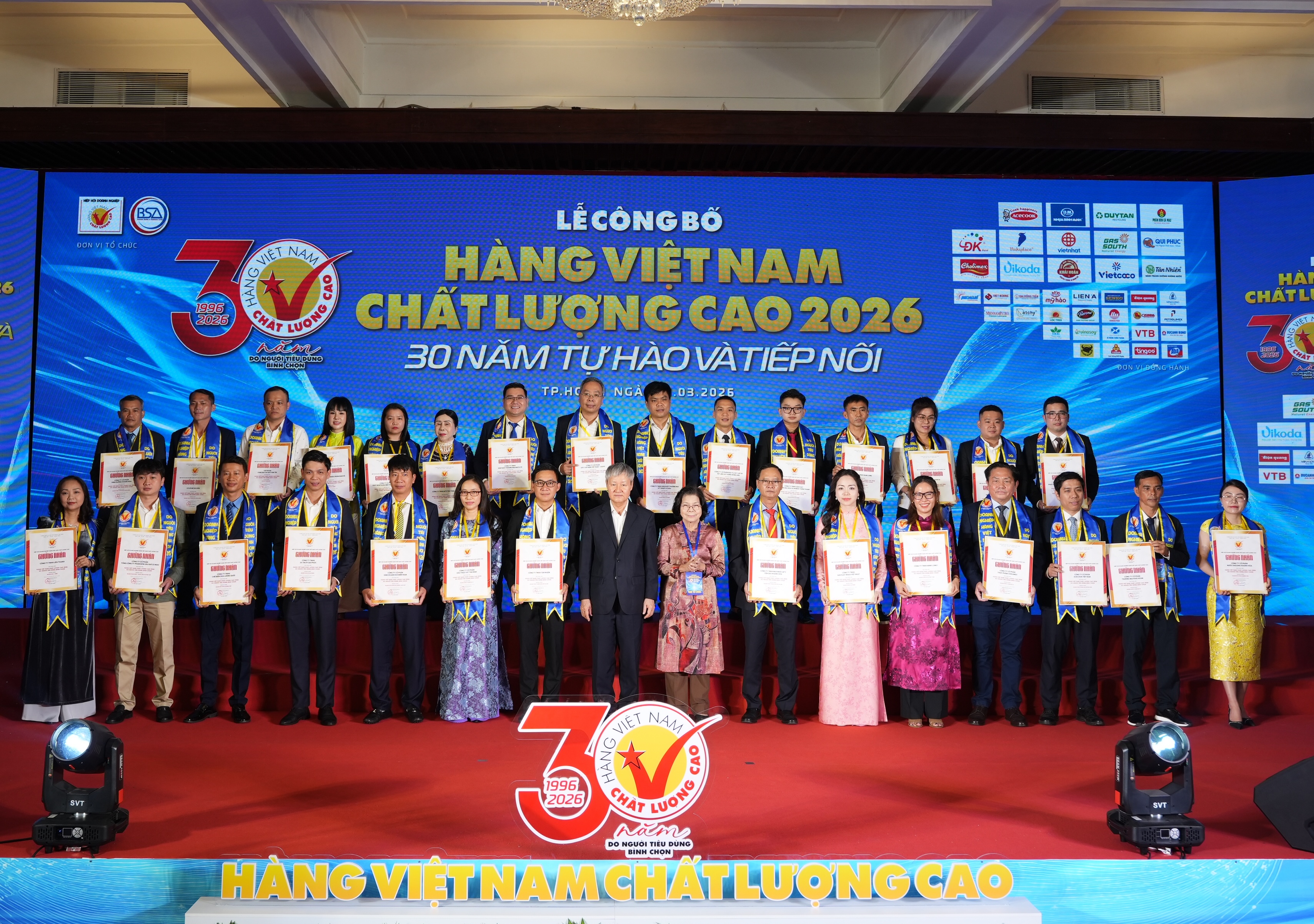 Chiều 31/3, tại TP.HCM, Hiệp hội Doanh nghiệp Hàng Việt Nam Chất lượng cao tổ chức Lễ công bố và vinh danh 581 doanh nghiệp đạt nhãn hiệu chứng nhận Hàng Việt Nam chất lượng cao (HVNCLC) năm 2026 do người tiêu dùng bình chọn. Sự kiện mang ý nghĩa đặc biệt khi đánh dấu tròn 30 năm hình thành và phát triển của chương trình – một sáng kiến được xây dựng hoàn toàn dựa trên niềm tin thị trường.