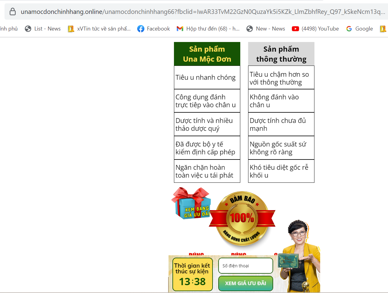 Sản phẩm Una Mộc Đơn được quảng cáo "đánh bay khối u chỉ sau một tháng", tuy nhiên, đây là thông tin sai sự thật.