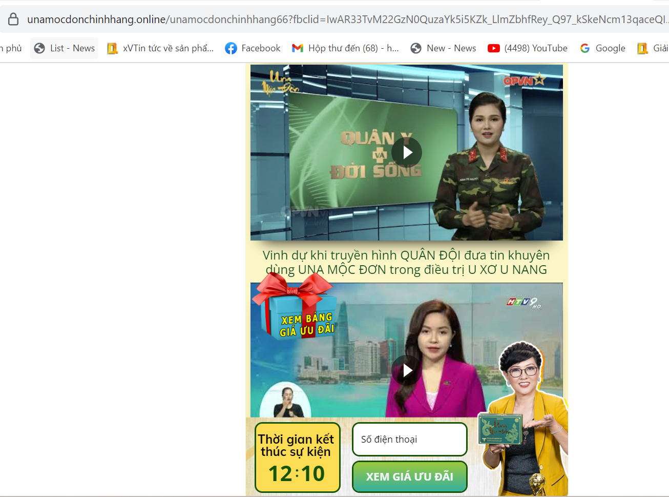Chưa dừng lại ở đó, trên mạng xã hội còn xuất hiện những video quảng cáo về sản phẩm Una Mộc Đơn. Điều đáng nói là những video này cắt ghép logo bản tin của một số đài truyền hình (truyền hình QPVN, HTV9) để quảng cáo về công dụng của Una Mộc Đơn sai sự thật, có dấu hiệu lừa dối người tiêu dùng và vi phạm bản quyền truyền hình, giả mạo cơ quan truyền hình, báo chí để quảng cáo cho sản phẩm.