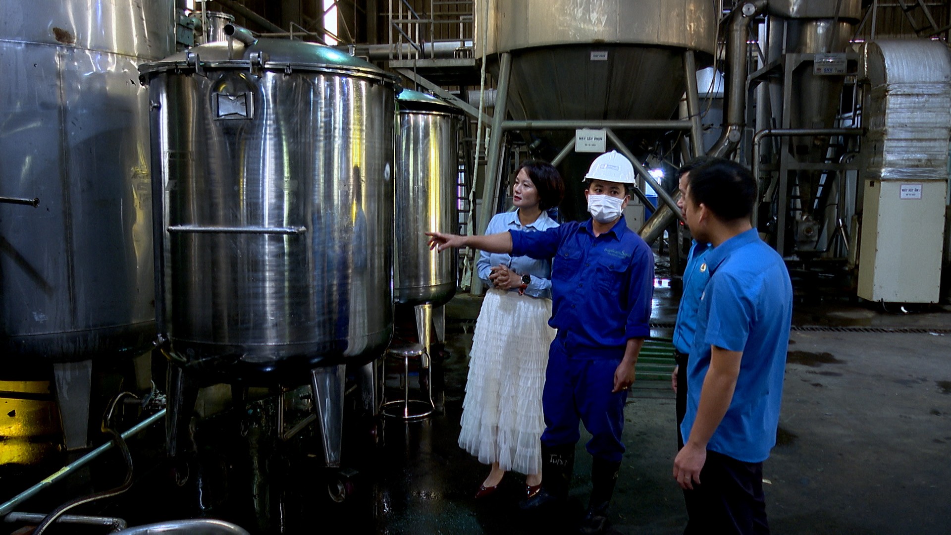 Công nhân Công ty TNHH Một thành viên Traphaco Sapa giới thiệu về dây chuyền chế biến thảo dược.