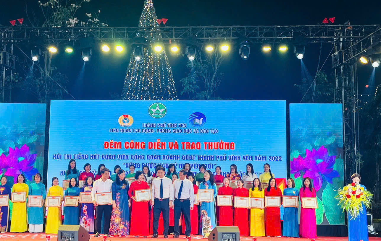 Trao thưởng tại Hội thi “Tiếng hát Đoàn viên Công đoàn ngành Giáo dục và Đào tạo TP. Vĩnh Yên năm 2025 - Vững bước vào kỷ nguyên mới”.