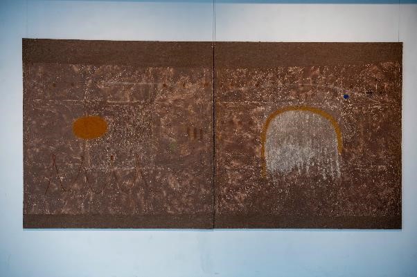 Tác phẩm _Cửa thiền (Zen Gate) 1_, Chất liệu tổng hợp, Kích thước 4,2m x 2,1m, Sáng tác năm 2024 của Hoạ sĩ Lý Trực Sơn được trưng bày tại Triển lãm “ĐẤT – EARTH”Thay vì cố gắng cắt nghĩa các tạo hình trong tranh, triển lãm mời gọi người xem bước vào một trạng thái nhập định và chiêm nghiệm về lực hút huyền bí, vô thức đã chỉ dẫn cho những sáng tạo của người nghệ sĩ hay sự hiện hữu vật lý từ cơ thể, chất liệu mà Lý Trực Sơn đã chắt lọc và kiến tạo nên vũ trụ của riêng mình. Khán giả có thể tự do cảm thụ và tương tác tiềm thức với các tác phẩm theo góc nhìn và cảm nhận riêng, thay vì gò bó vào những ý niệm chủ quan.