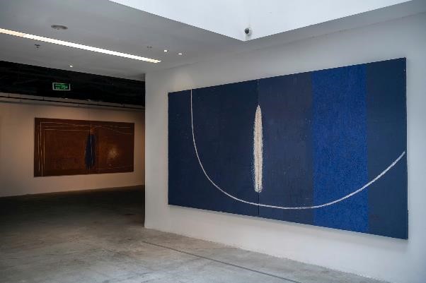 Tác phẩm Lam và trắng, Chất liệu tổng hợp, Kích thước 4,2m x 2,1m, Sáng tác năm 2024 của Hoạ sĩ Lý Trực Sơn được trưng bày tại Triển lãm “ĐẤT – EARTH”Triển lãm “ĐẤT – EARTH”, mở cửa từ ngày 29/09/2024 đến hết ngày 17/11/2024 tại Trung tâm Nghệ thuật đương đại Vincom (VCCA), B1-R3 Vincom Mega Mall Royal City, 72A Nguyễn Trãi, Quận Thanh Xuân, Hà Nội.