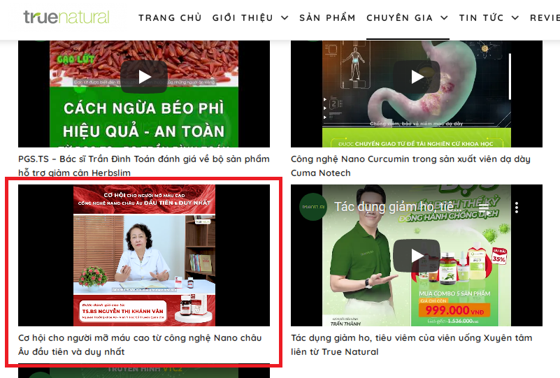 Sử dụng hình ảnh của bác sĩ quảng cáo, giới thiệu về sản phẩm. Hình ảnh trên web: truenatural.com.vn/chuyen-gia/
