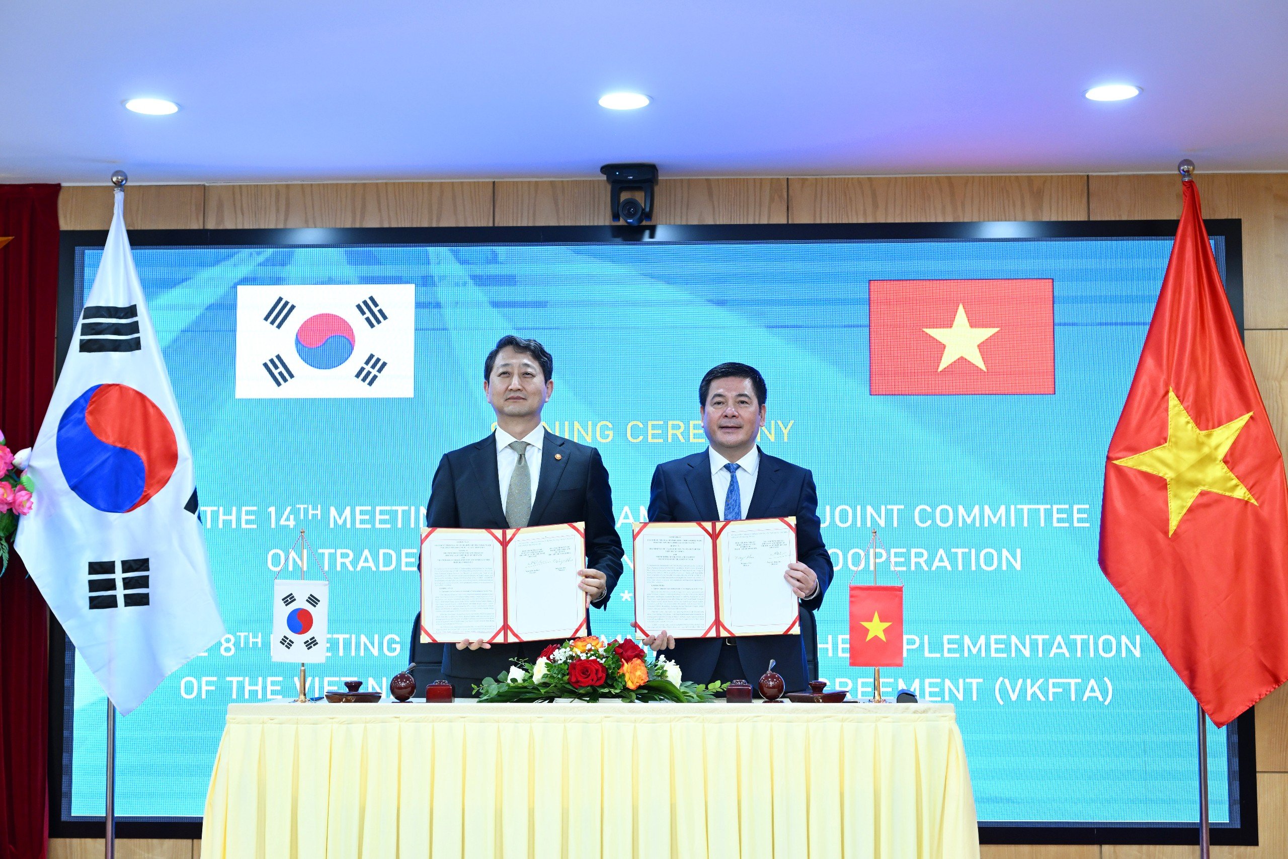 Kết thúc hai kỳ họp, hai Bộ trưởng đã cùng ký kết ba văn kiện bao gồm: Biên bản kỳ họp lần thứ 14 Ủy ban hỗn hợp về hợp tác thương mại, công nghiệp và năng lượng Việt Nam - Hàn Quốc; Tuyên bố chung của Kỳ họp lần thứ 8 Ủy ban thực thi Hiệp định Thương mại tự do Việt Nam - Hàn Quốc; Kế hoạch hành động thực hiện mục tiêu kim ngạch thương mại song phương 150 tỷ USD theo hướng cân bằng hơn.