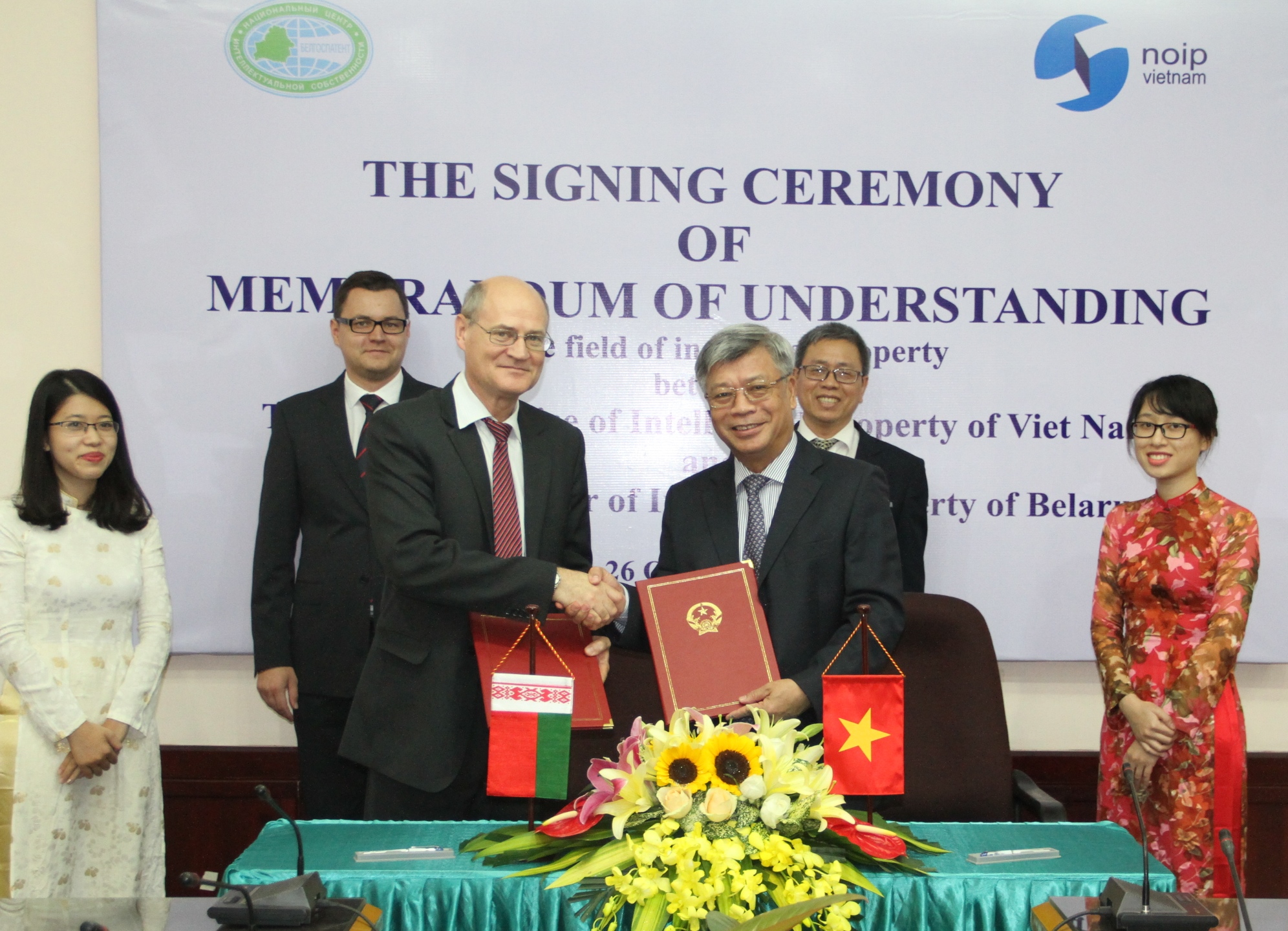 Sáng nay 26/10, tại Hà Nội đã diễn ra lễ ký kết Bản ghi nhớ hợp tác trong lĩnh vực bảo hộ sở hữu công nghiệp giữa Cục Sở hữu trí tuệ Việt Nam và Trung tâm Sở hữu trí tuệ quốc gia Belarus.