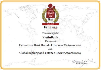 Global Banking & Finance Review vinh danh VietinBank hạng mục “Ngân hàng cung ứng sản phẩm phái sinh tốt nhất Việt Nam năm 2024”