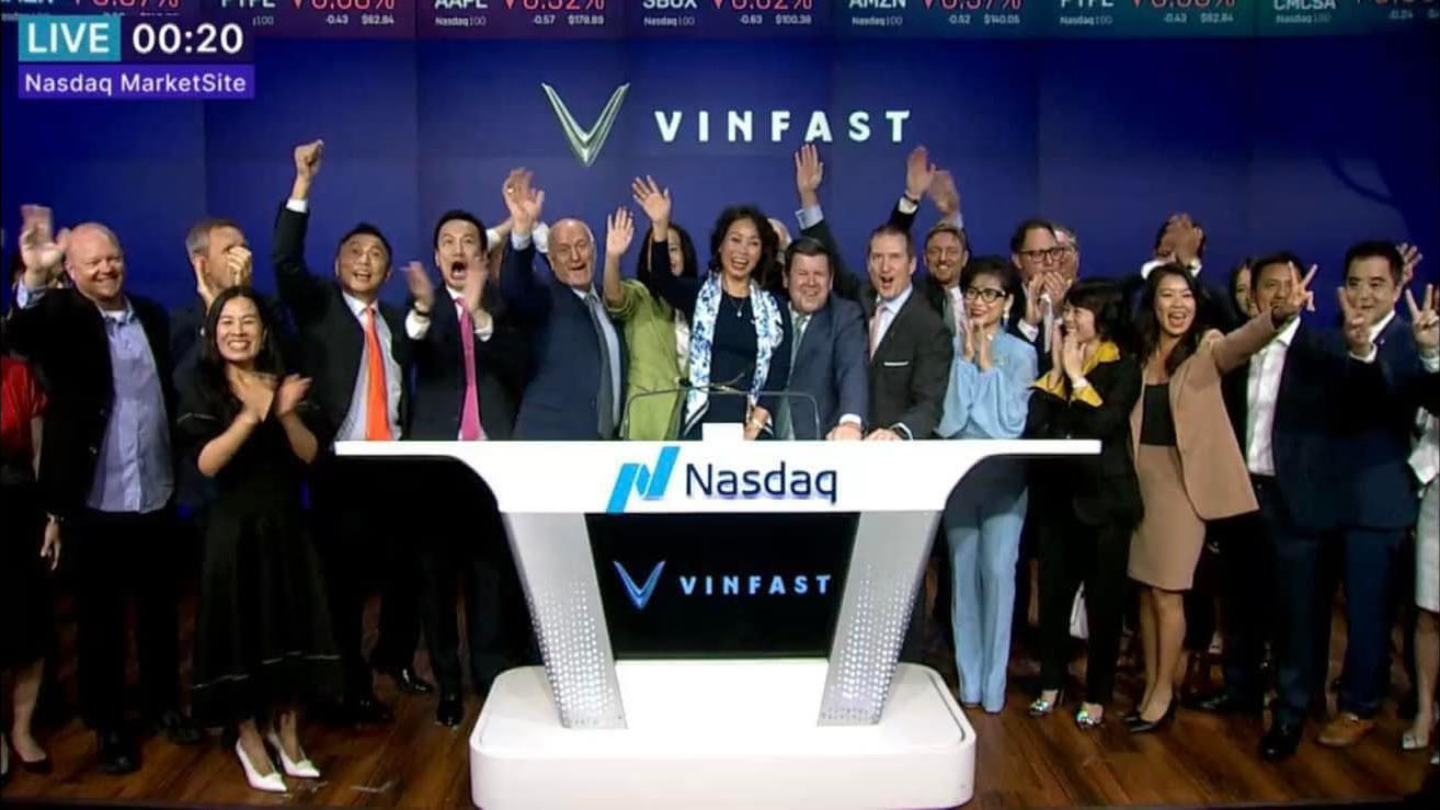 Vào 9h20 ngày 15/8 theo giờ tại New York, Mỹ (20h20 theo giờ Việt Nam), lễ công bố niêm yết cổ phiếu VinFast Auto Ltd. trên sàn chứng khoán Nasdaq Stock Market LLC. (Nasdaq) đã được diễn ra dưới sự góp mặt của đại diện VinFast, Black Spade và sàn chứng khoán Nasdaq. Và 10 phút sau, VinFast chính thức rung chuông ra mắt trên Nasdaq để bắt đầu giao dịch với mã niêm yết "VFS”.