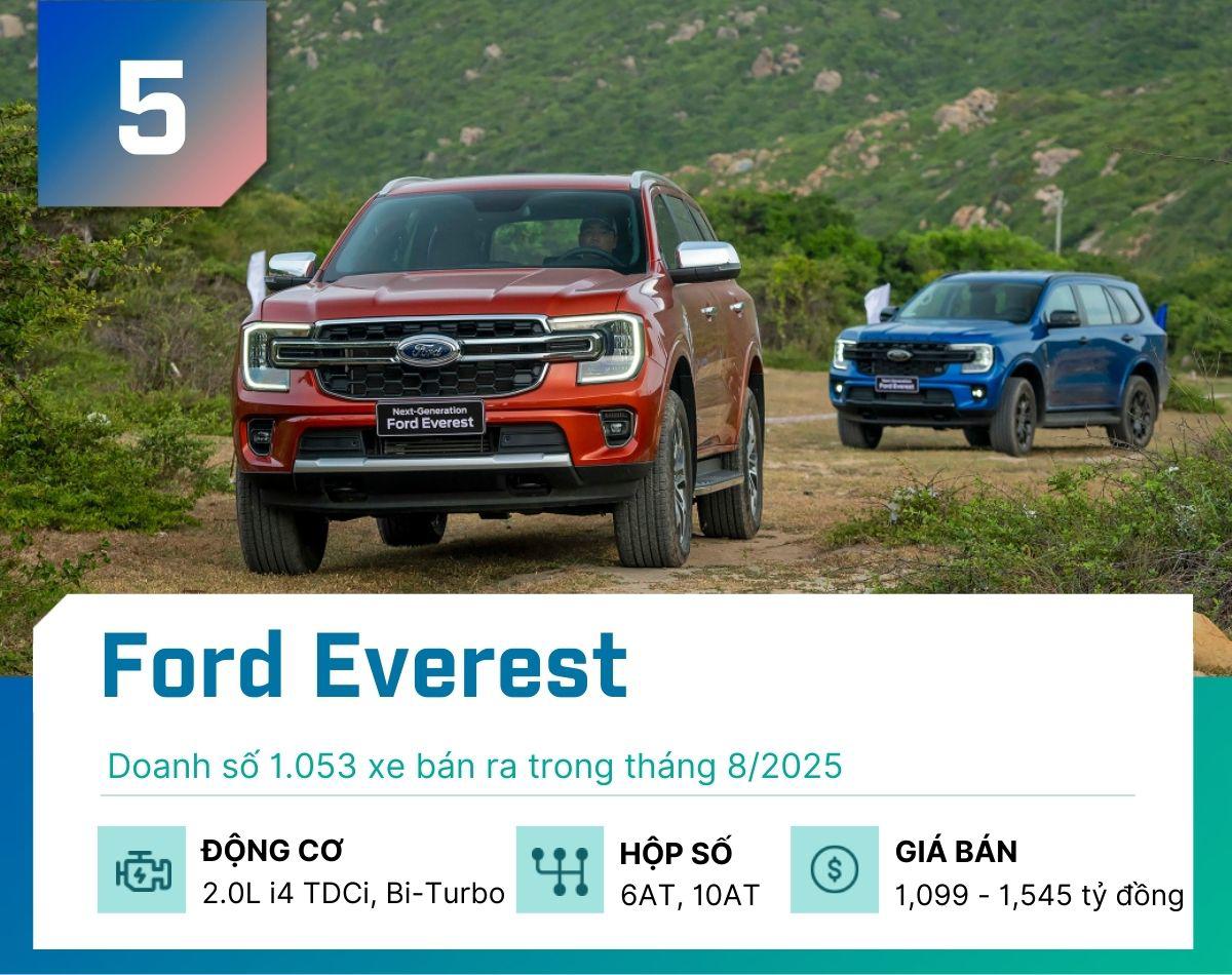 Dưới đây là danh sách 5 mẫu xe gầm cao bán chạy nhất tại Việt Nam tháng 8/2025: