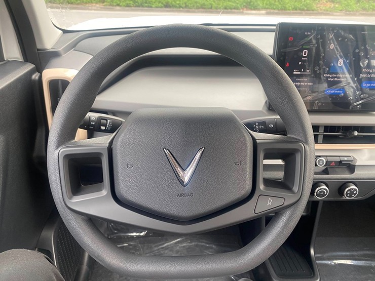 Vô-lăng trên VF 3 mới được khoét hai hốc nhằm tăng độ bám và sự thoải mái khi cầm lái, đồng thời bổ sung nút đàm thoại rảnh tay – chi tiết từng xuất hiện trên xe phân phối tại Indonesia. Màn hình giải trí vẫn giữ nguyên kích thước 10 inch, giao diện và bố cục quen thuộc, ngoài nâng cấp kết nối điện thoại thông minh.