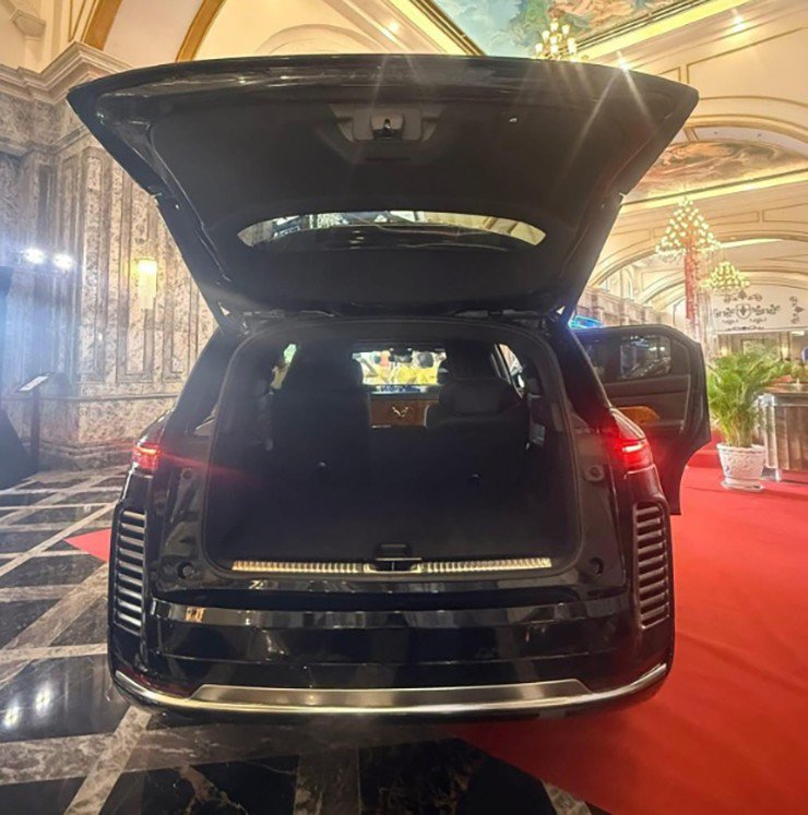 Những hình ảnh rò rỉ trước đó cho thấy nội thất VinFast VF 9 Lạc Hồng 900 LX có thêm vách ngăn cố định giữa khoang lái và khoang hành khách, ốp gỗ cao cấp và kính chắn riêng tư. Hai ghế sau được bổ sung bệ đỡ bắp chân, chỉnh điện đa hướng, có chế độ ngả sâu, sưởi ấm và làm mát.