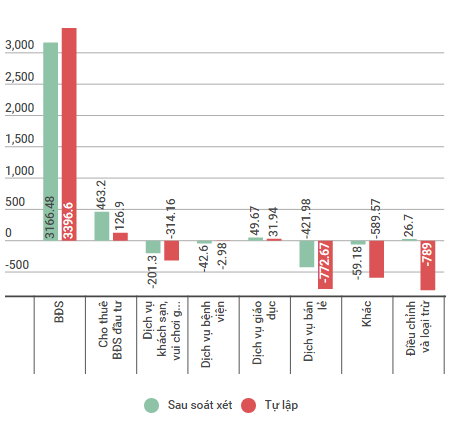 Trước đó, Vingroup tính dự phòng thêm phần giá vốn có thể phát sinh theo ngân sách do chưa đối chiếu được hết hàng tồn kho trong toàn hệ thống Vinmart và Vinmart +. Tại thời điểm soát xét, Tập đoàn đã thu thập đủ dữ liệu về hàng tồn kho và thực hiện điều chỉnh giảm khoản dự phòng giá vốn này. Thu nhập trước thuế mảng dịch vụ bán lẻ đã giảm lỗ đáng kể so với báo cáo trước đó.