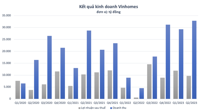 Tổng lợi nhuận hợp nhất sau thuế đạt 21.600 tỷ đồng, tăng 295% so với cùng kỳ năm trước và hoàn thành 72% kế hoạch năm. Thu nhập trên mỗi cổ phần (EPS) trong 6 tháng đầu năm 2023 đạt 4.954 đồng.Tính đến hết tháng 6 năm 2023, doanh số bán hàng của Vinhomes đạt 40.600 tỷ đồng, chủ yếu đến từ kênh bán lẻ. Trong đó, doanh số quý II đạt 24.900 tỷ đồng, tăng 58% so với quý I/2023.