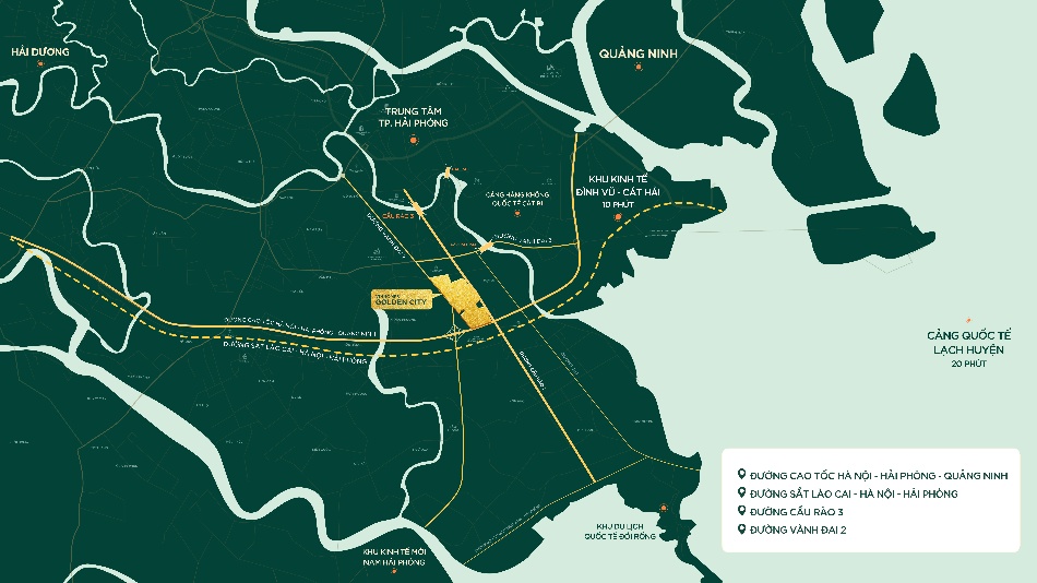 Theo đại diện chủ đầu tư, Vinhomes Golden City được phát triển theo mô hình đại đô thị “thành phố giao thương”, với quy hoạch đồng bộ bao gồm các phân khu thấp tầng, cao tầng, shophouse cùng hệ thống tiện ích đa dạng như giáo dục, y tế và thương mại. Dự án tọa lạc tại vị trí trung tâm chiến lược của thành phố Hải Phòng, liền kề các trục giao thông huyết mạch như đường 363, đường Phạm Văn Đồng và cao tốc Hà Nội – Hải Phòng – Hạ Long. Đặc biệt sắp tới có thêm đường vành đai 2, đường cầu Rào 3 kết nối trực tiếp đến các vùng kinh tế trọng điểm của Thành phố Hải Phòng.