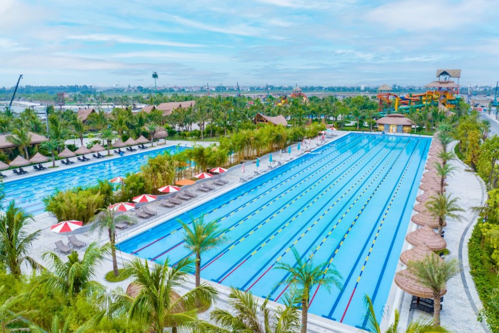 Hệ thống bể bơi phong cách Olympics cho các kình ngư thỏa sức bơi lội trên đường đua xanh