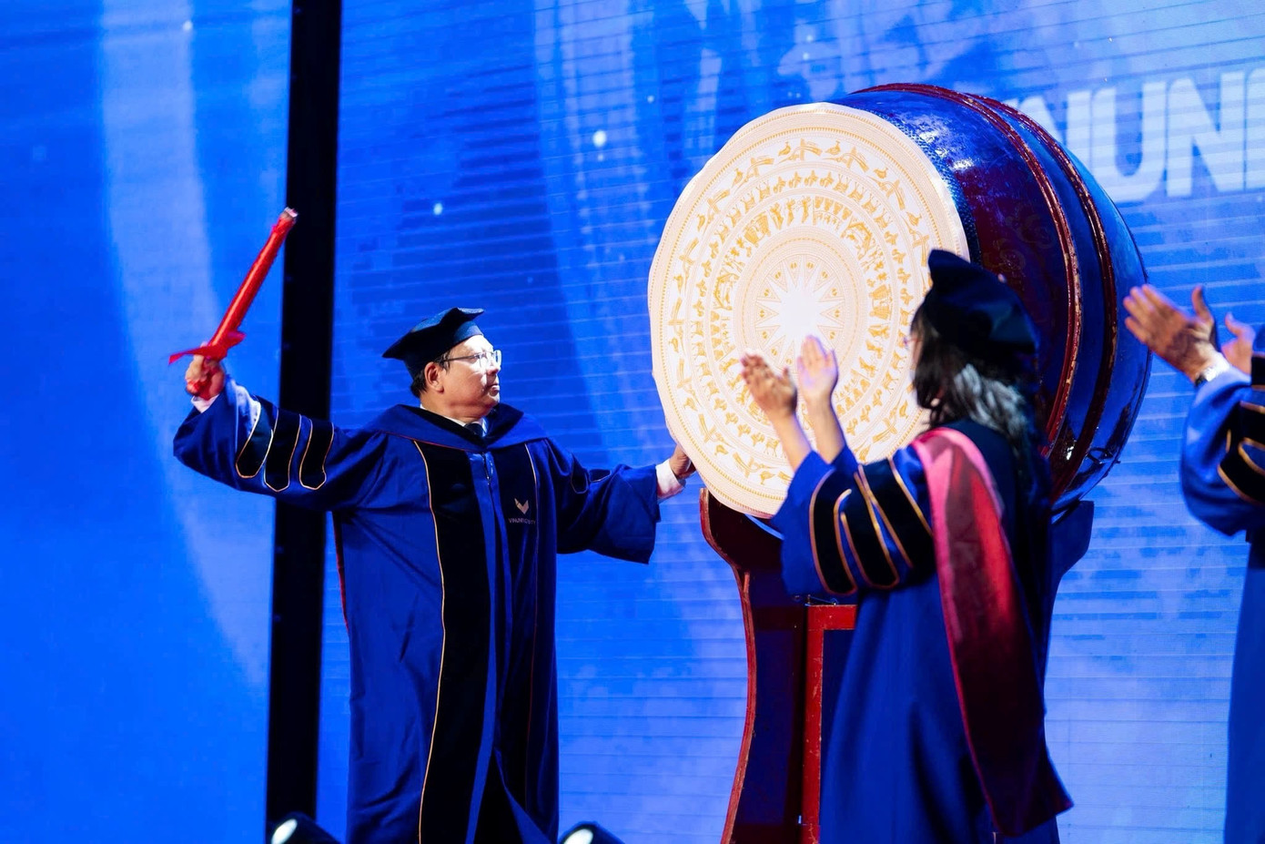 Lễ khai giảng cũng đánh dấu việc VinUni chính thức chào đón GS. Yap-Peng Tan, nguyên Quyền Hiệu trưởng Trường Kỹ thuật, đại học Công nghệ Nanyang (NTU), Singapore trên cương vị Hiệu trưởng và GS Ling San, nguyên Phó Chủ tịch Thường trực, nguyên Tổng Hiệu trưởng NTU, trên cương vị Phó Chủ tịch Thường trực Hội đồng trường.