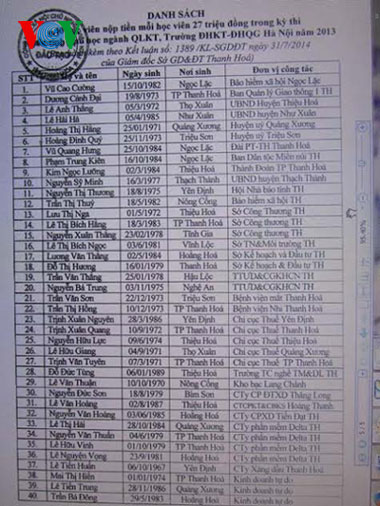 Bộ GD-ĐT được biết, UBND tỉnh Thanh Hóa đã yêu cầu, chỉ đạo sát sao Sở GD-ĐT tỉnh và các cơ quan liên quan điều tra, xác minh vụ việc 40 học viên ở tỉnh nộp tiền “chống trượt” thi Cao học. Trong quá trình điều tra mở rộng, ngoài những cán bộ của Trung tâm GDTX Thanh Hóa, nếu các cơ quan chức năng có phát hiện thêm những cán bộ nào của ĐH Kinh tế (ĐH Quốc gia Hà Nội) hay những đơn vị khác vi phạm, dính líu đến vụ việc tiêu cực này thì Bộ GD-ĐT ủng hộ quan điểm là phải làm rõ và xử lý nghiêm khắc. Đây là hình thức xử lý mà trong ngành Giáo dục, các trường ĐH đã quán triệt và không thể chấp nhận được những tiêu cực đó xảy ra.