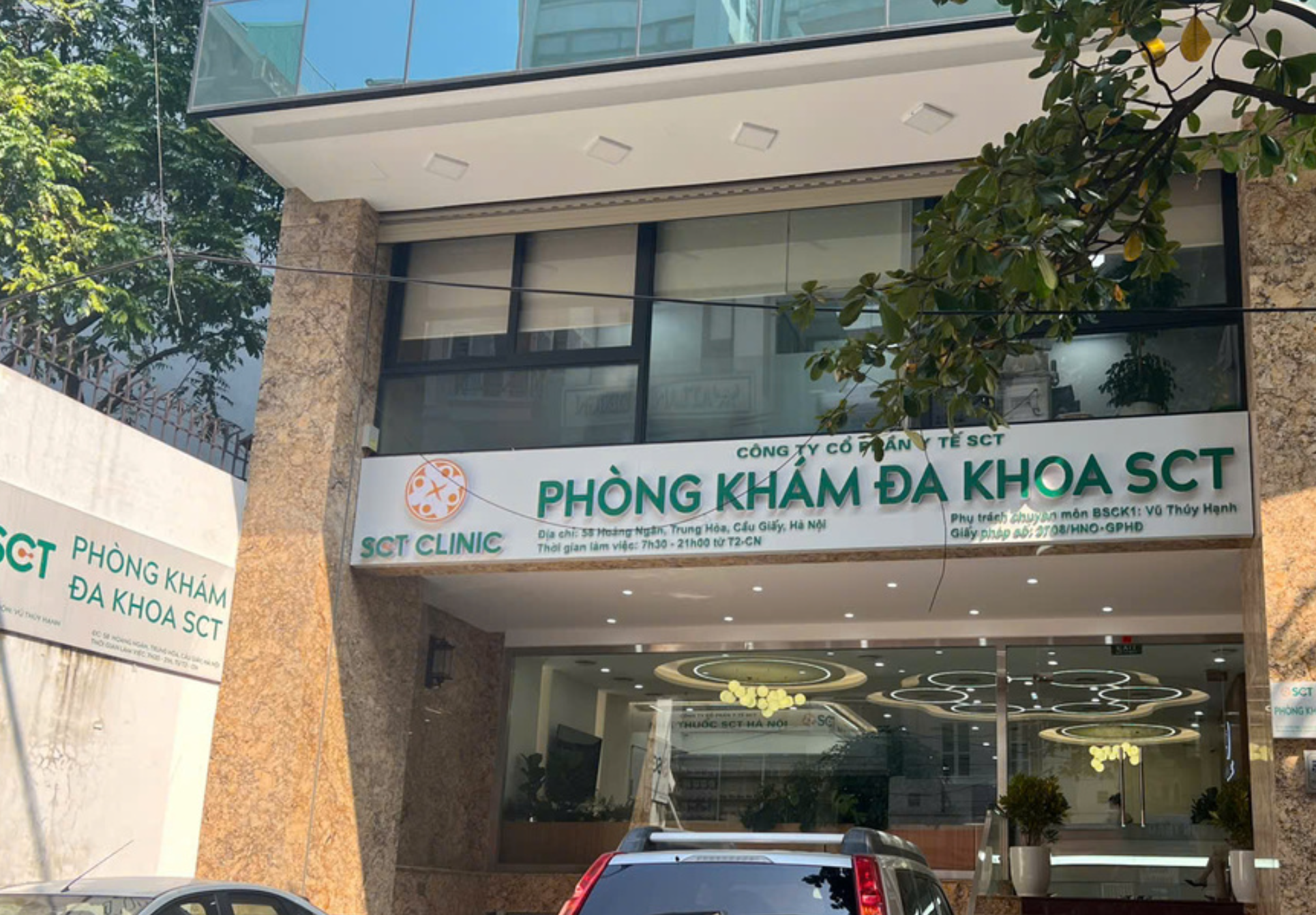 Xử phạt, tước giấy phép hoạt động Phòng khám đa khoa SCT 4 thángVới các hành vi trên, Phòng khám đa khoa SCT đã vị xử phạt 178 triệu đồng. Đồng thời Thanh tra Sở Y tế Hà Nội đã tước quyền sử dụng Giấy phép hoạt động của Phòng khám đa khoa SCT trực thuộc Công ty cổ phần y tế SCT - Địa chỉ: Tầng 1+2+3, số 56- 58 Hoàng Ngân, phường Trung Hoà, quận Cầu Giấy, thành phố Hà Nội trong thời hạn 4 tháng; Bên cạnh đó, Thanh tra Sở Y tế cũng tước quyền sử dụng Chứng chỉ hành nghề của bà Vũ Thuý Hạnh - Người chịu trách nhiệm chuyên môn kỹ thuật của Phòng khám trong thời gian 3 tháng.