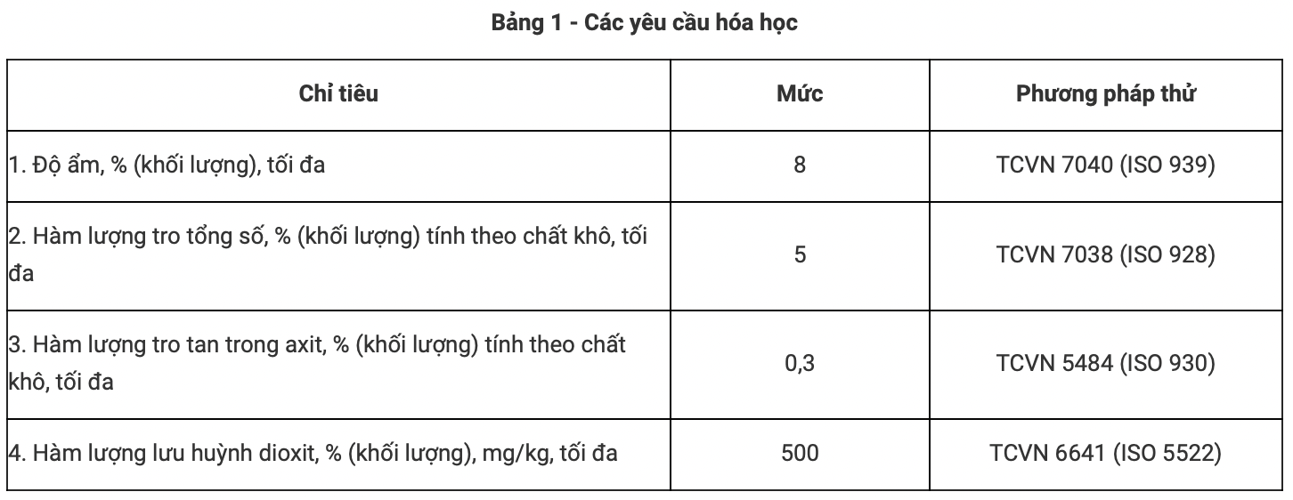 Yêu cầu hóa học: Hạt tiêu xanh khô phải đáp ứng các mức yêu cầu nêu trong Bảng 1.